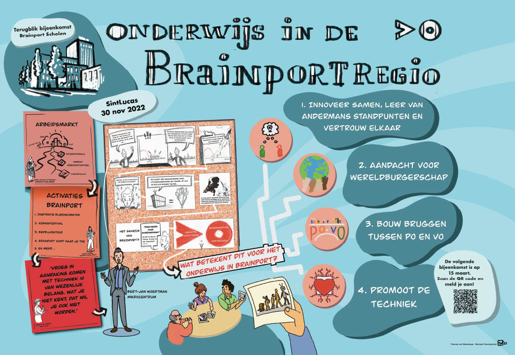 | Beste onderwijsprofessional, Eind november hadden we onze eerste inspiratiebijeenkomst bij het SintLucas over Onderwijs in de Brainportregio. Met een prikkelende keynote van Bert-Jan Woertman, en een boeiend gesprek over het onderwijs van de toekomst, vloog de tijd voorbij. NT2 onderwijs en meertaligheid waren vaak onderwerp van gesprek. Met jullie input zijn we aan de slag gegaan om een nieuwe inspiratiebijeenkomst te organiseren.  Klik op deze afbeelding voor een visual van de vorige inspiratiebijeenkomst. Inspiratiebijeenkomst ‘Internationalisering: meertaligheid’ De volgende bijeenkomst vindt plaats op woensdag 15 maart 2023, vanaf 14:30 uur bij het Jan van Brabant College aan de Molenstraat in Helmond. De bijeenkomst is voor schoolleiders, coördinatoren, docenten (in opleiding) en andere geïnteresseerden van alle scholen uit het PO, VO en MBO in de Brainportregio. Ga op onze informatiemarkt in gesprek met NT2 experts van o.a. Van Dale, Rezulto en Boom, bekijk methodes als “Spreektaal”, “Logo” en “Wereld vol woorden”, of bezoek de stands van onder andere de bibliotheek, HSE language schools en Rocket English. Er is een variatie aan workshops, met een aantal mooie voorbeelden vanuit onder andere Fontys, Summa én ervaringsdeskundigen van basisscholen en middelbare scholen uit onze regio. Programma